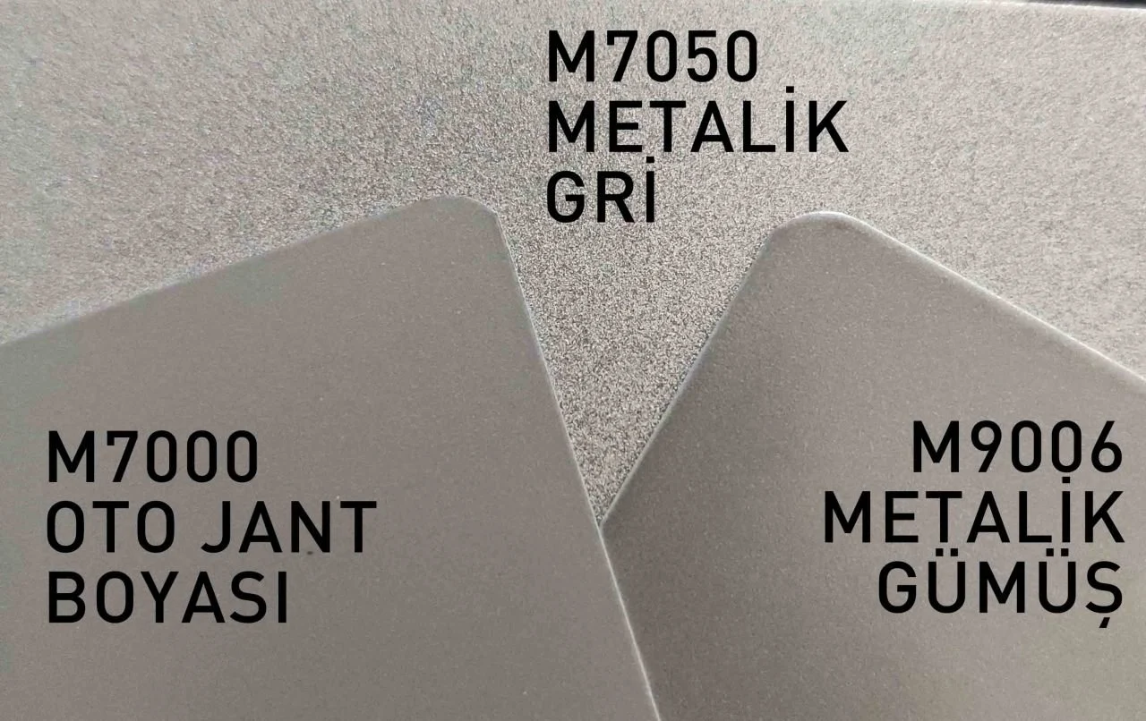 Ral 9006 renk kodu ile uyumlu metalik gri rengidir. Metal efekti ince taneli yapıdadır.